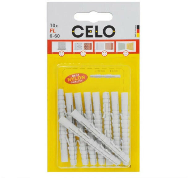 A CELO FL extra hosszú nylon dűbel hosszú tágulási szakaszának köszönhetően egyformán használható tömör és üreges építőanyagokban, vagy porózus szerkezetekben (pl. öreg épületek). A gallér nélküli fejrész lehetővé teszi az átmenő szerelést. A szárnyas kialakítás megakadályozza az elforgást a furatban. A dűbel kiváló minőségű, öregedésálló nylonból készül. Alkalmazások