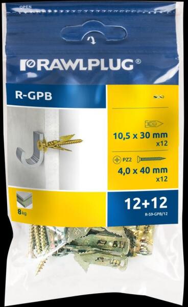 Rawlplug Beüthető gipszkarton ék csavarral R-S11-GPB/12, 10, 5x30 mm, 4, 0×40 (12db/csom) (65594)